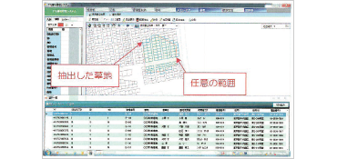 検索機能や抽出機能といったGISの強みを生かしたシステムになっています。